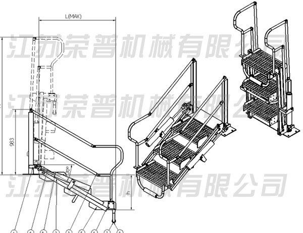 活動梯用于在平臺與罐車之間建立安全通道?;顒犹葜饕商げ?、扶手、彈簧缸平衡系統(tǒng)等組成。